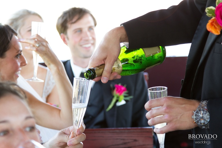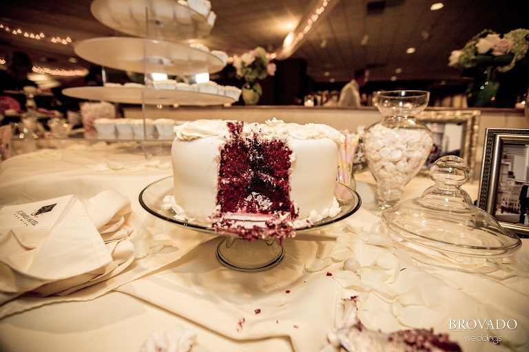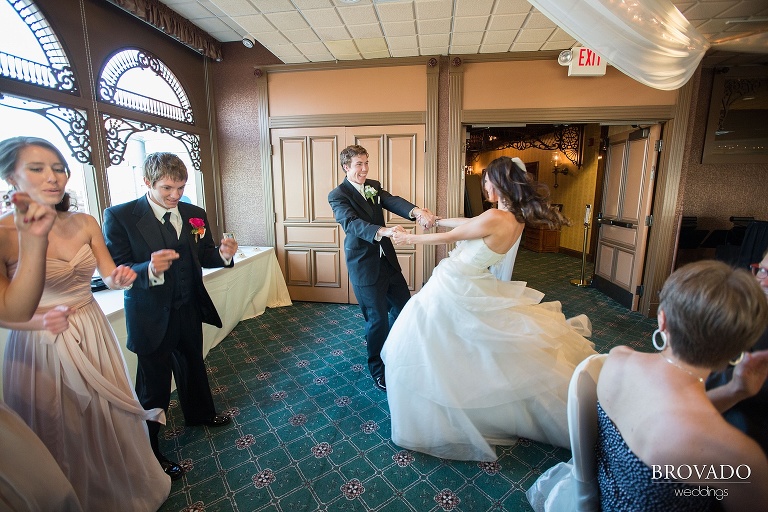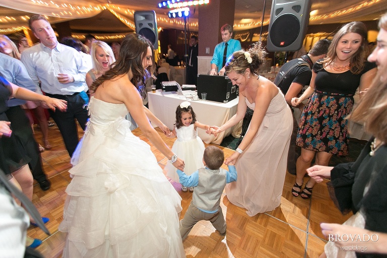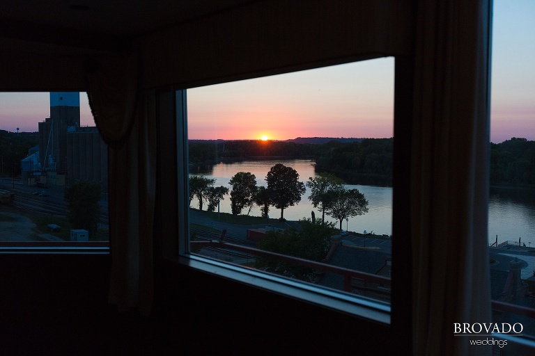 The reception hall offered another picture-perfect location. The hotel’s spacious Summit Room is lined with windows that provide a spectacular view of the Mississippi River. During the reception, the setting sun lit the room perfectly for capturing some beautiful photos.