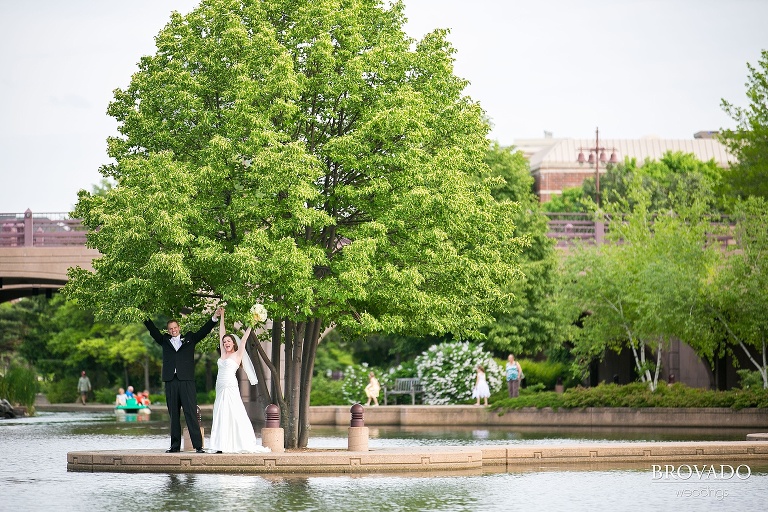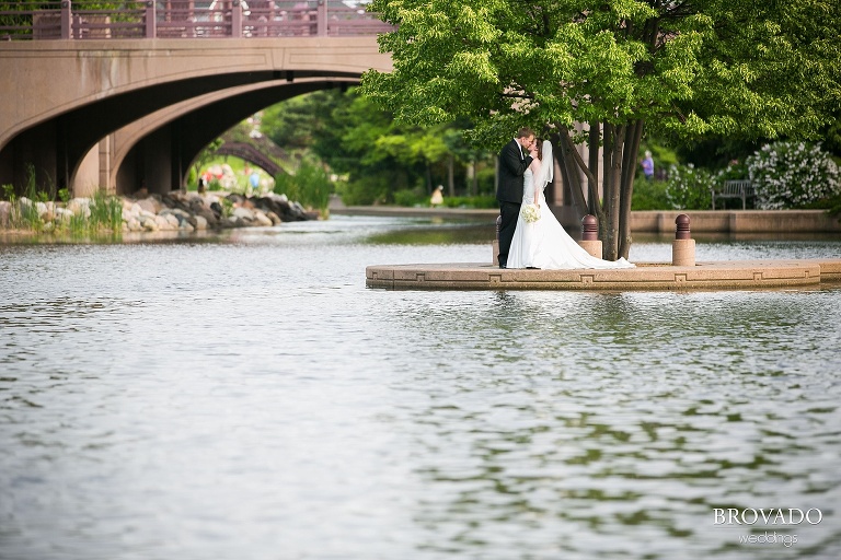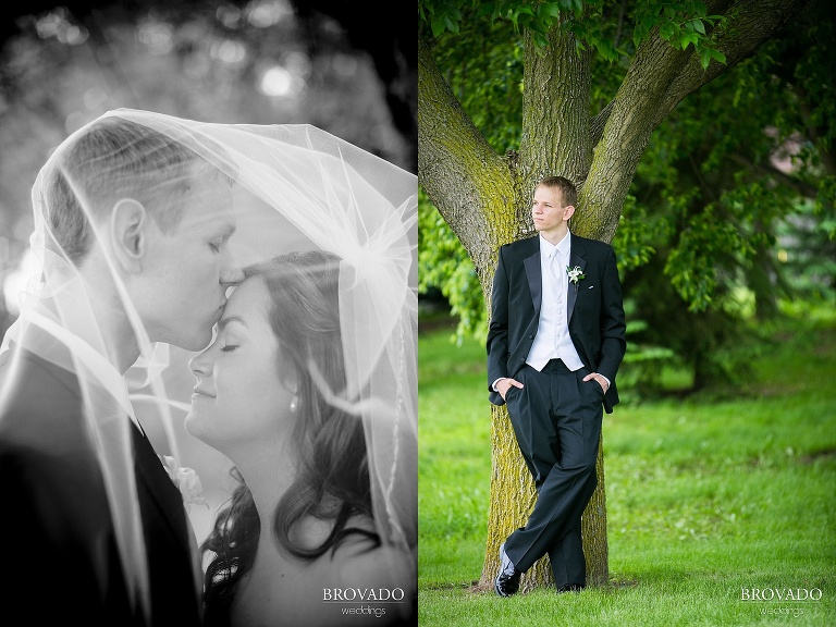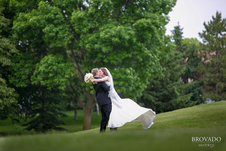 Congratulations to Jenni and Mike on their recent marriage!  The couple got married on a beautiful early summer day in Edina, MN near Minneapolis.  I love all the awesome wedding photos we got from the day.  You can see so much authentic love between this couple, it is really sweet…  The June weather gave us the opportunity to take some beautiful outdoor wedding photos at Centennial Lakes Park in Edina.  Jenni’s gorgeous white flower bouquet was a subtle accent that made for some amazing wedding photography against the vibrant green of the grass and trees.