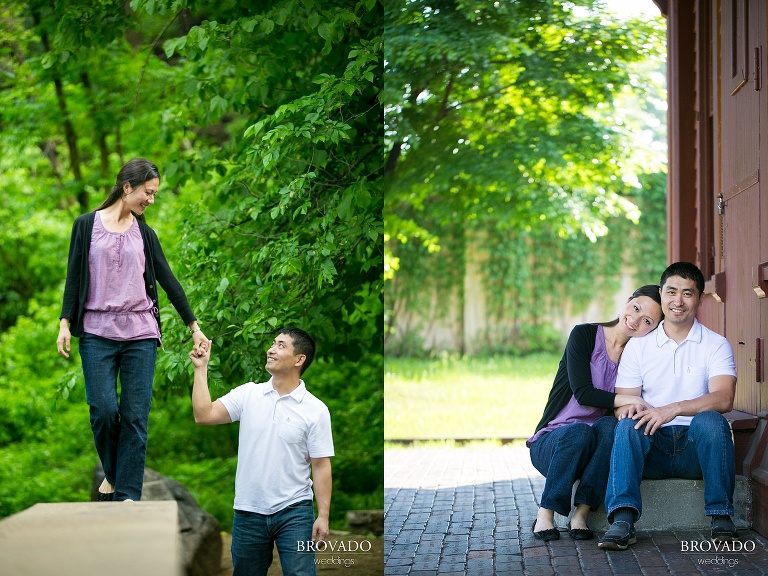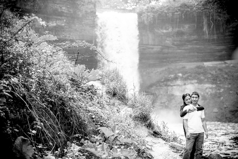 I love taking engagement photos at Minnehaha Falls! It’s so close to Minneapolis and still feels like you’ve been transported to a different place. I suppose that’s one of the perks of the constantly changing landscape found throughout Minnesota. I spent an afternoon with Miu Shan and Nick at Minnehaha Falls taking their engagement photos. The lush green of the trees and the beautiful falls made for some great engagement photography. You can see the love these two have for each other so easily.