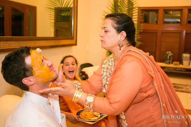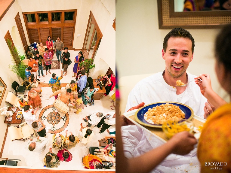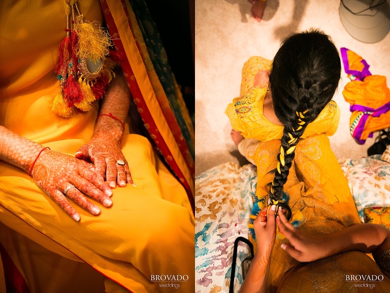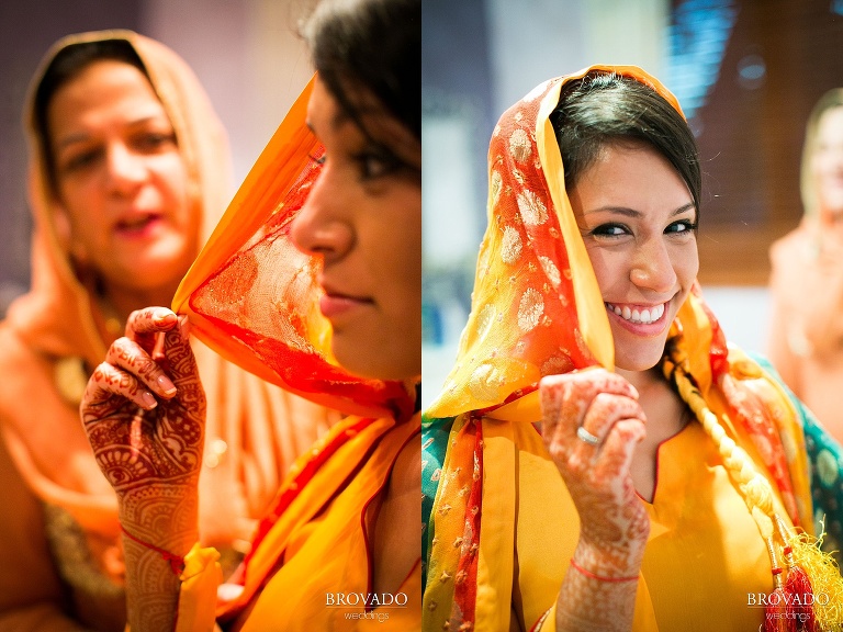 Day number two of this three day long Indian wedding that I photographed in Minneapolis consisted of the Mehndi celebration.  Bride and groom Rosina and Matt were dressed in traditional clothing, and both of their families came together for a huge feast and festive celebration.  A relative’s warehouse was decorated with elaborately colorful drapes, lanterns, props and ornamental furniture provided by .jpg)