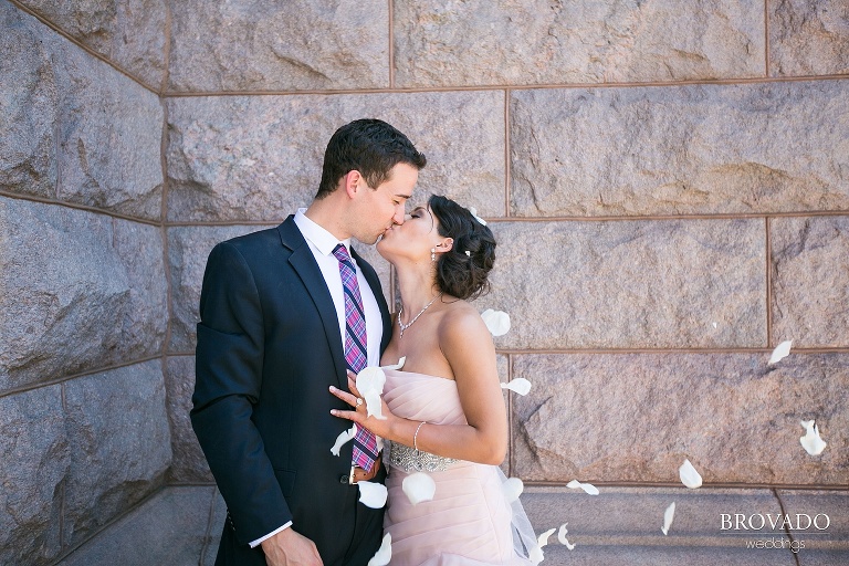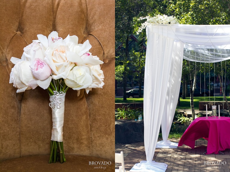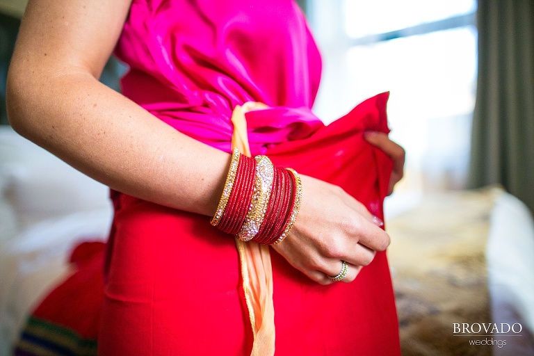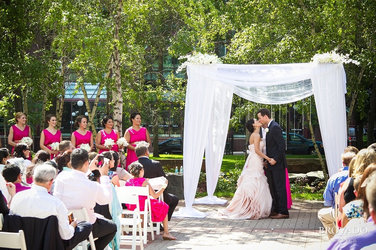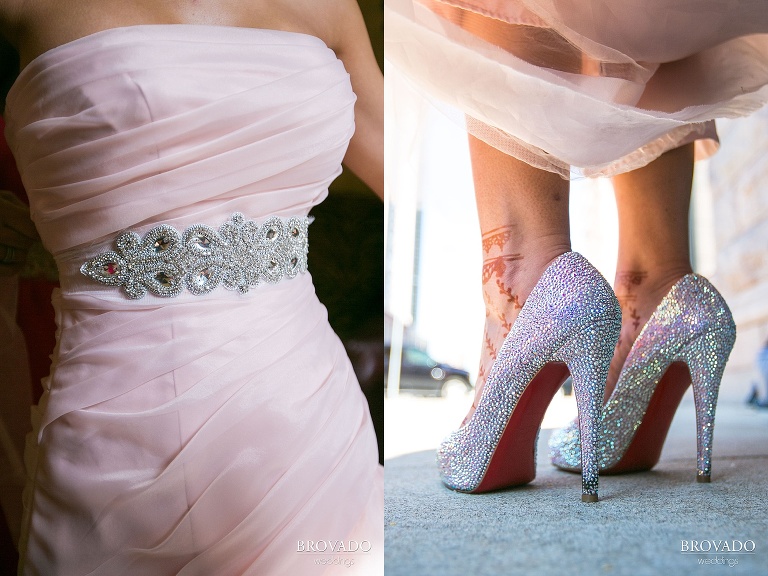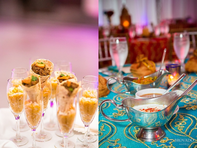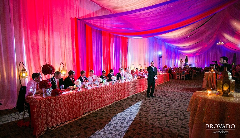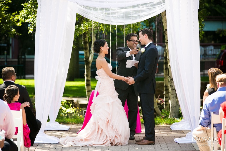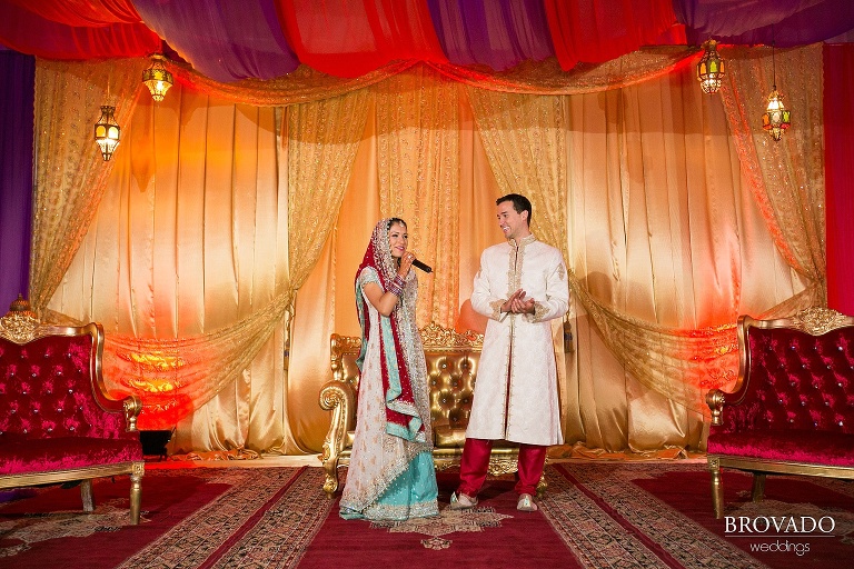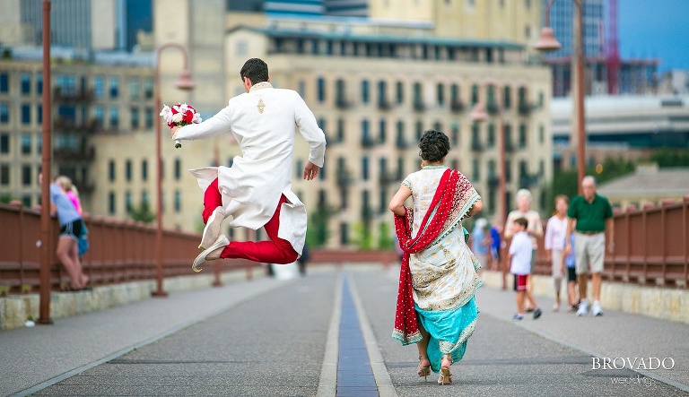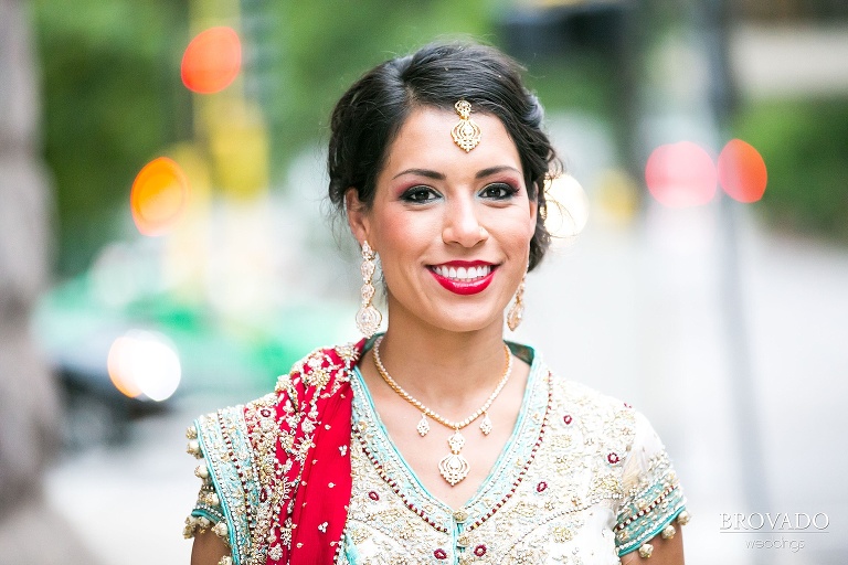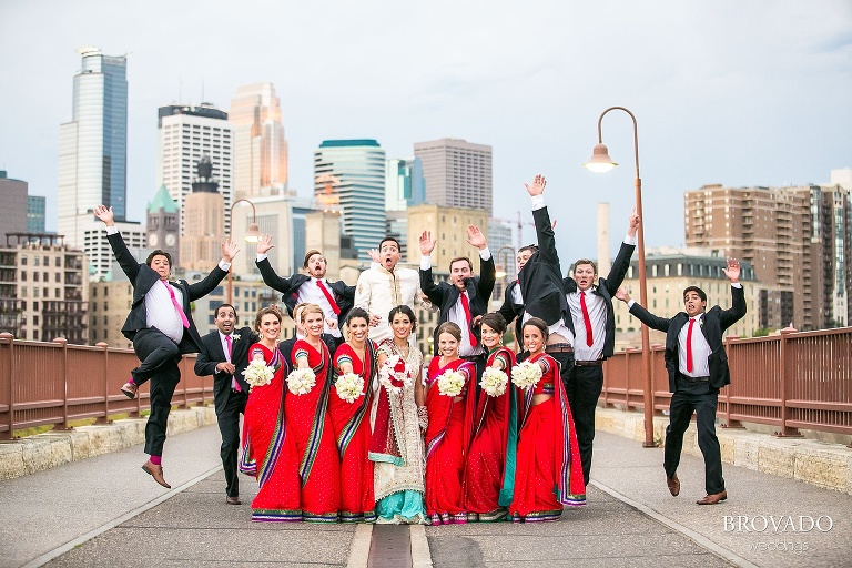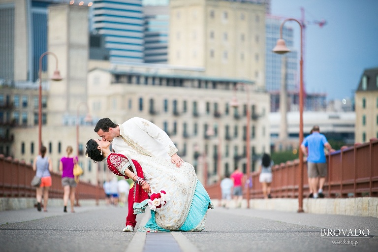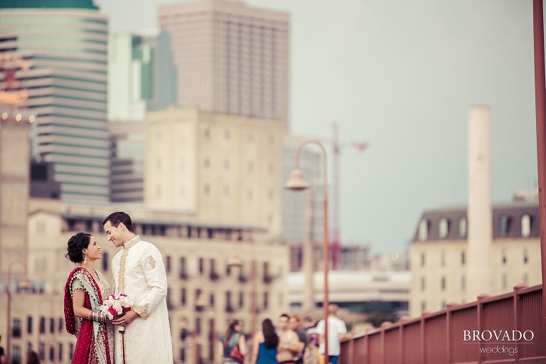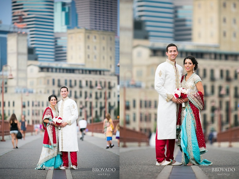In the final installation of this four part blog post, we showcase Rosina and Matt’s Indian style wedding reception.  The couple and their wedding party wore ornate and traditional Indian wedding clothing, jewelry and head pieces.  Their wedding reception at the Depot in downtown Minneapolis was a lavish event decorated with flowers, ornaments, colorful drapes and gold furnishings.  While I photographed her wedding reception, Rosina recalled how Matt proposed to her the year before.  When she arrived to Minneapolis after a stint at medical school Miami, Matt picked her up at the airport and told her he was taking her to see a meteor shower.  They wound up at the Lake Harriet bandstand, and climbed onto the stage, which had been filled with lit candles. That’s where he popped the question.  Rosina admits to having had a very “blonde moment” (no offense, blondes) and not realizing what was happening until the absolute last possible moment.  Luckily, she came to her senses in time to answer with a resounding “YES!”